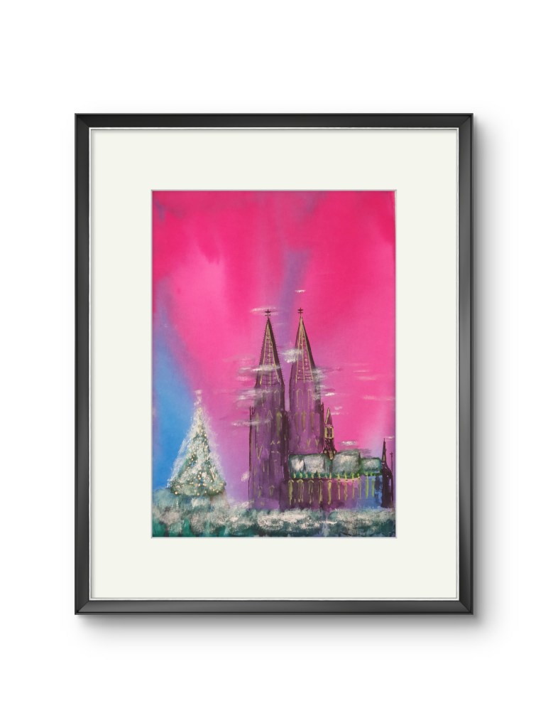 Kölner Dom. Weihnachten (Aquarell auf Papier, 20x30cm, gerahmt 30x40cm, 2022)