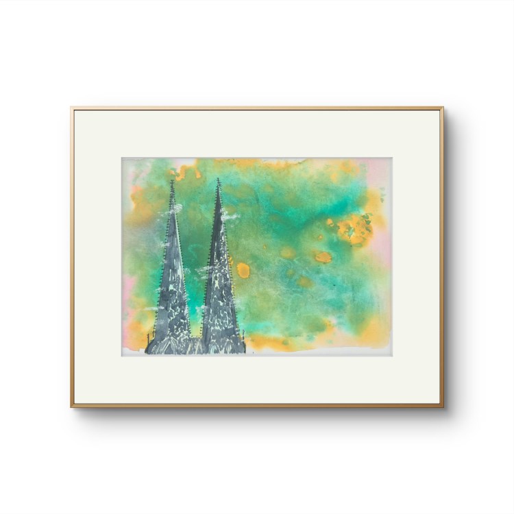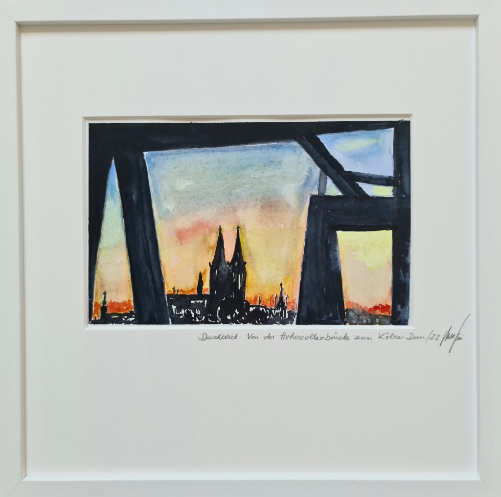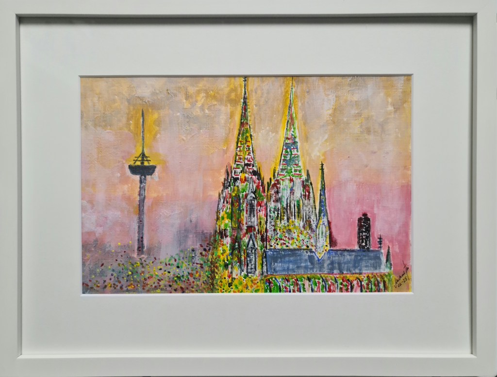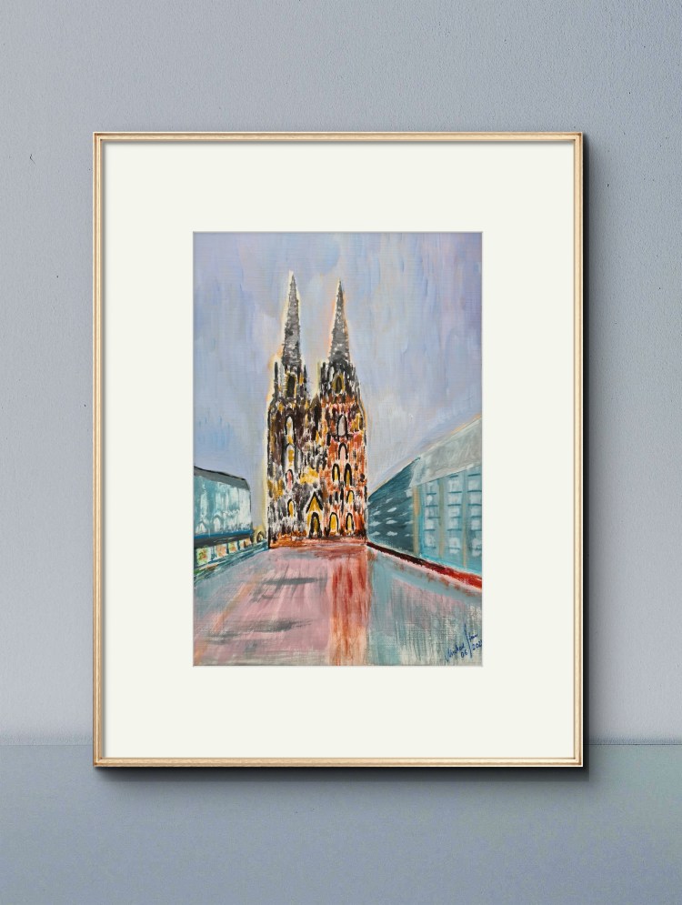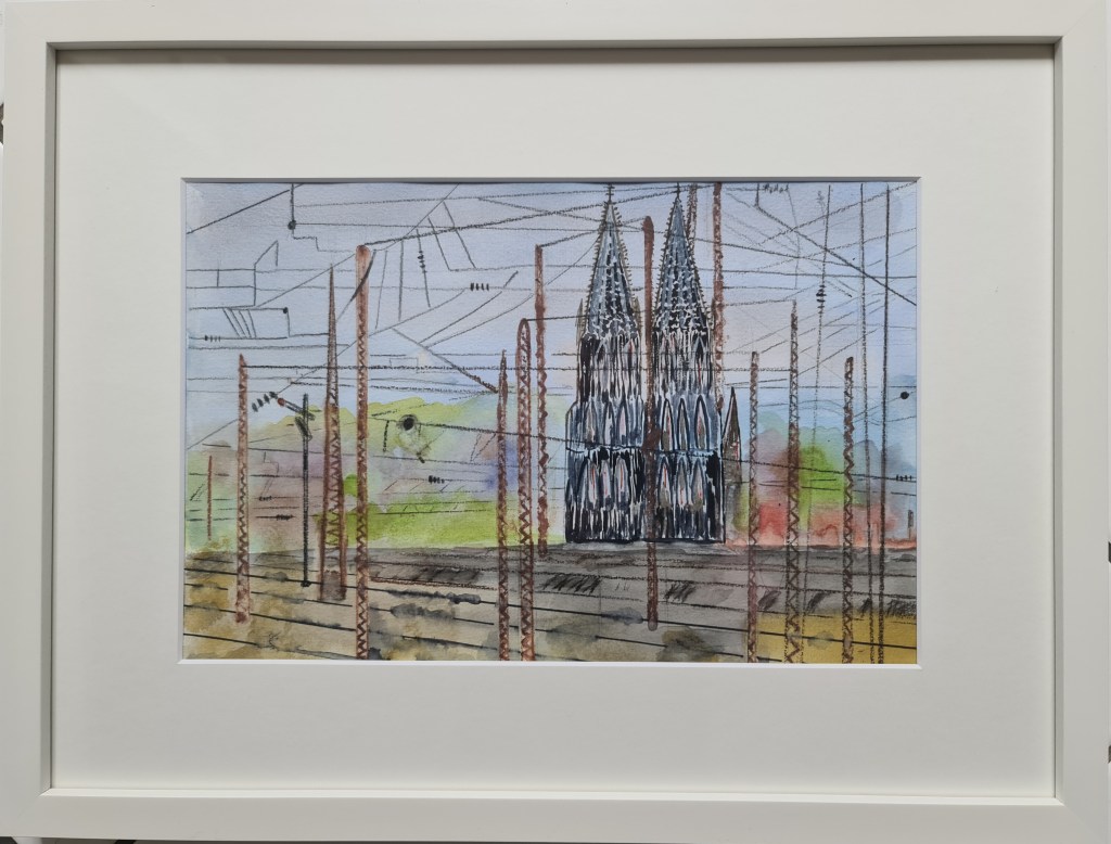 Kölner Dom. Und seine zwei Augen (Acryl auf Papier, 20x30cm, gerahmt 30x40cm, 2025)