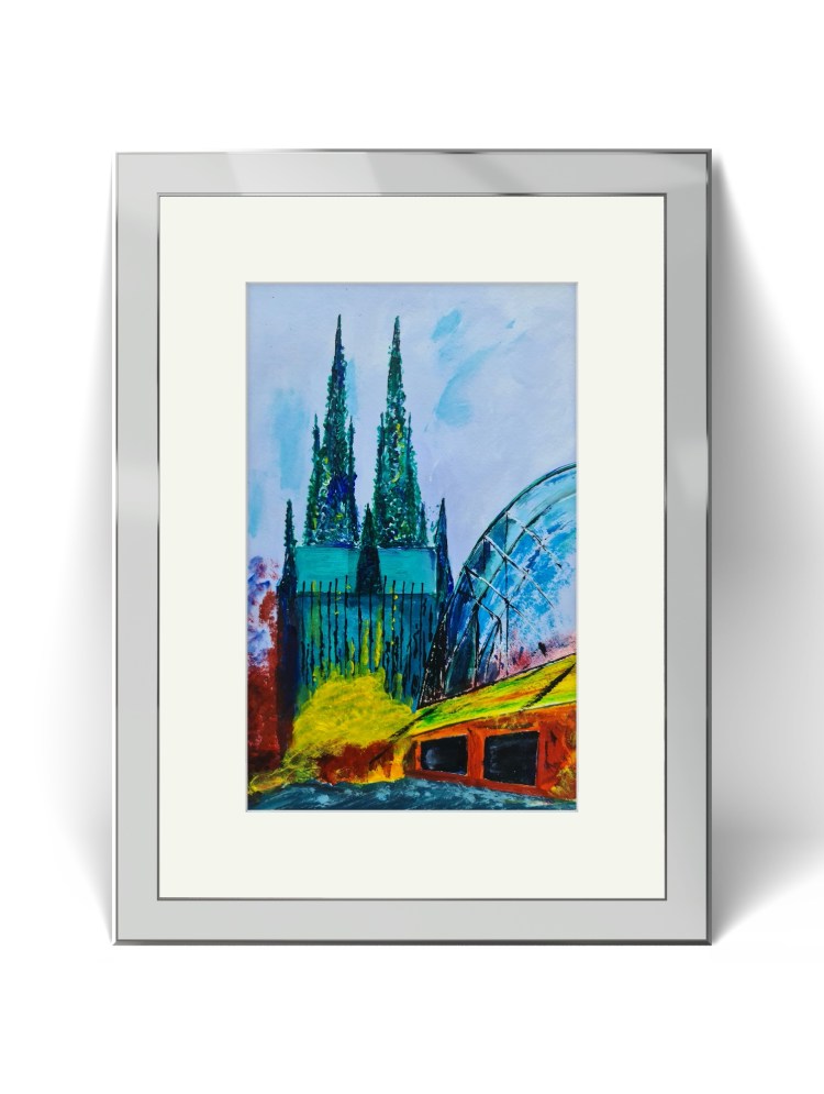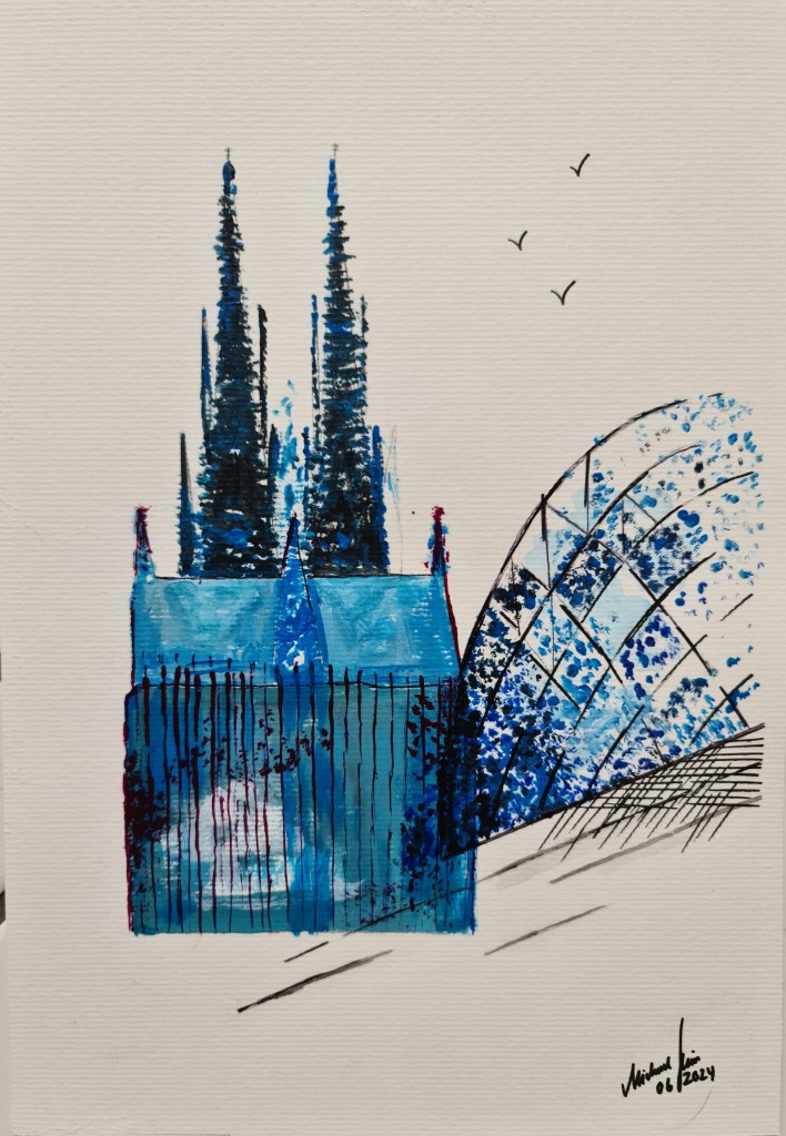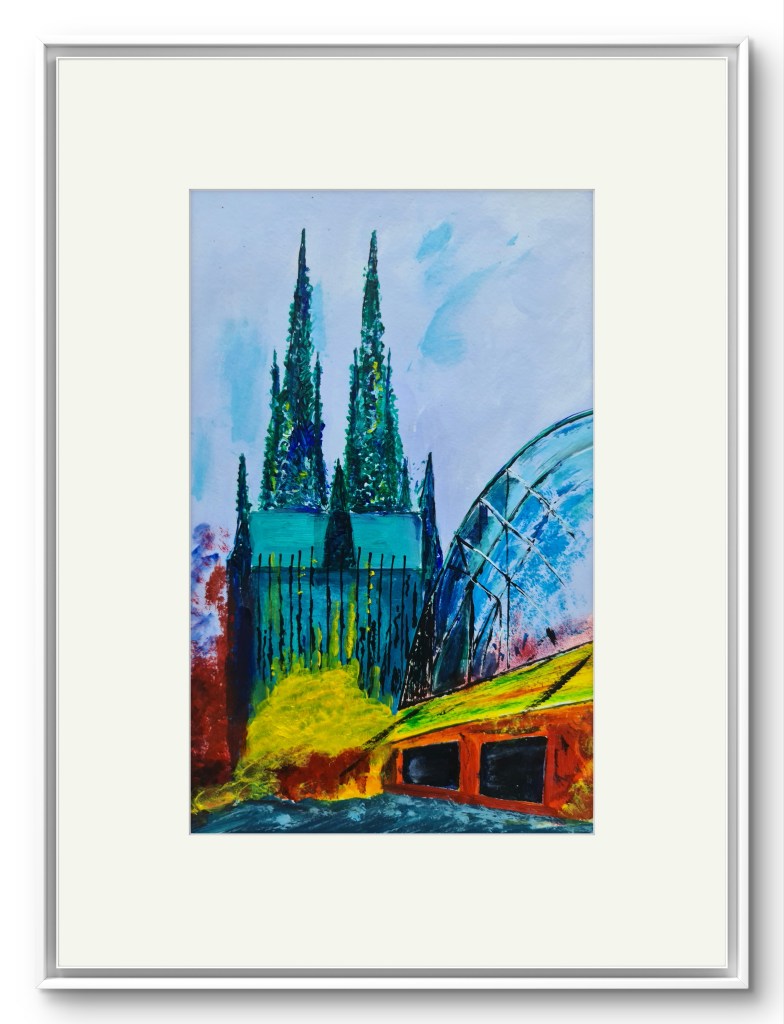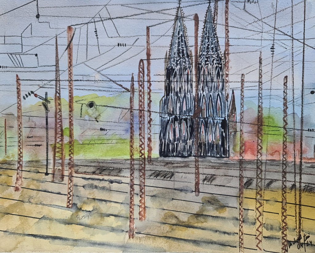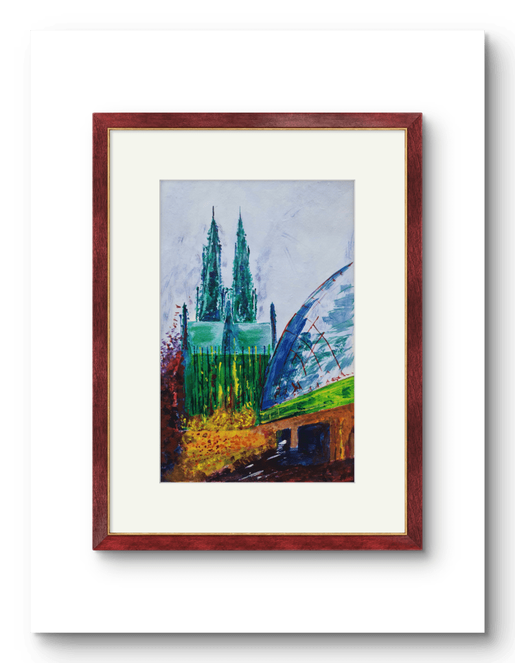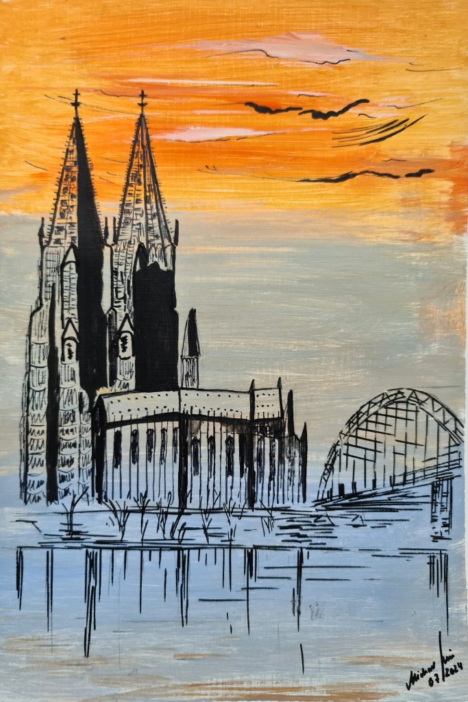 Kölner Dom. Und seine zwei Augen (Acryl auf Papier, 20x30cm, gerahmt 30x40cm, 2025)