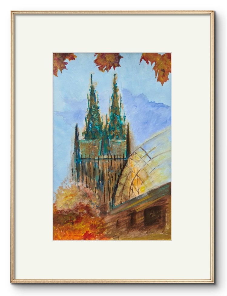 Kölner Dom. Im Herbst (Acryl auf Papier, gerahmt 30x40cm, 2024, verkauft)