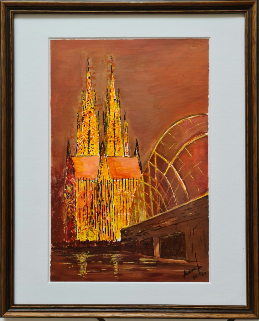 Kölner Dom. Expression (Acryl auf Papier, 20x30cm, gerahmt 30x40cm, 2024, verkauft)
