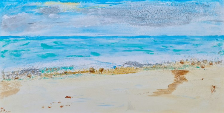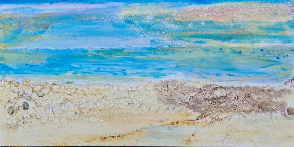 Strand. Mittag. Usedom (Mischtechnik auf Leinwand, 30x60cm, 2023)