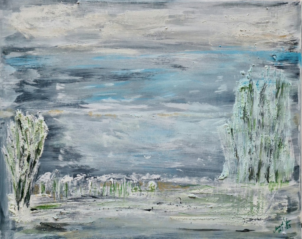 See. Luft. Nebel (Mischtechnik auf Leinwand, 40x50cm, 2023)