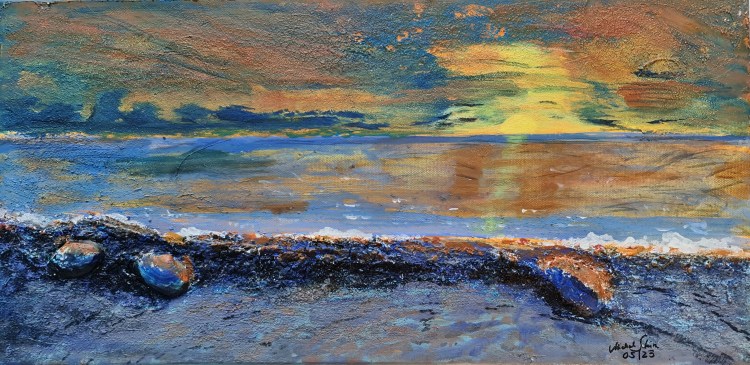 Ostsee. Sonne. Abend (Mischtechnik auf Leinwand, 30x60cm, 2023)
