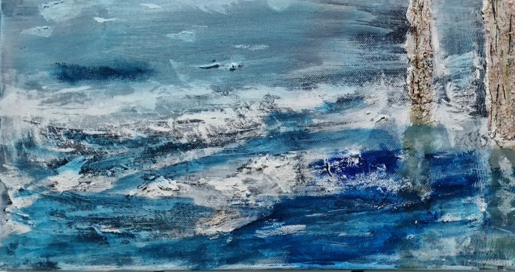 Das ´Blau`der Ostsee (Mischtechnik auf Leinwand, 30x60cm, 2023)
