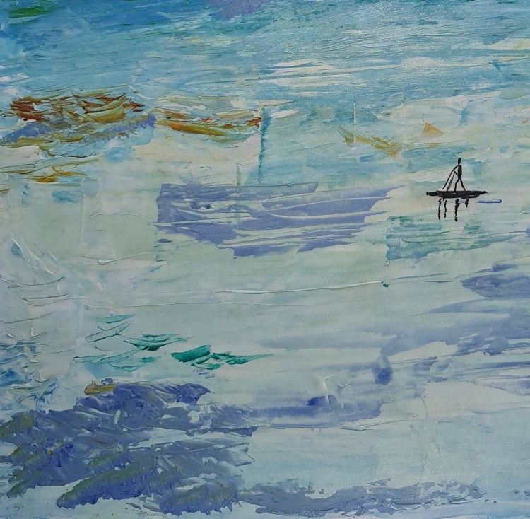 Stehpadlerin. Achterwasser (Acryl auf Leinwand, 30x40cm, 2023)