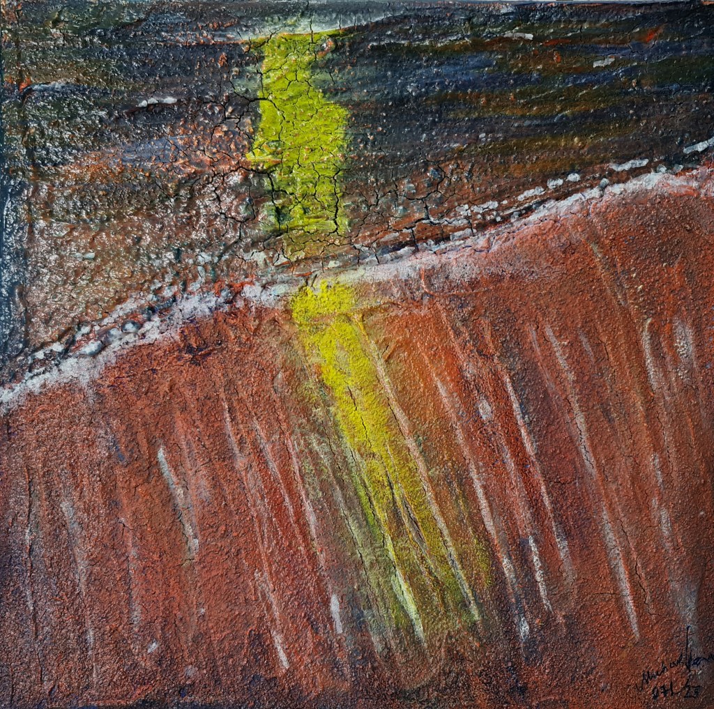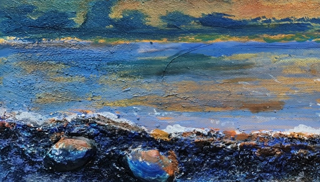 Abendrot.Meeressaum.Strand (Mischtechnik auf Leinwand, 30x30cm, 2023)