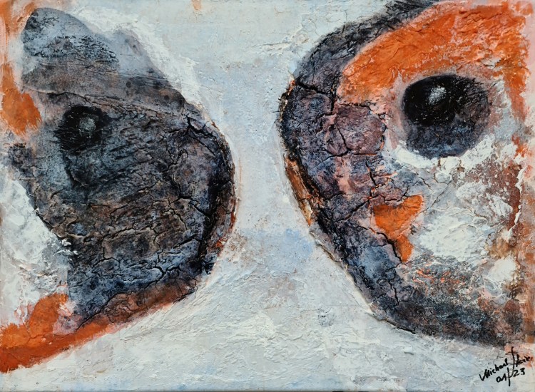 Unerwartete Begegnung (Mischtechnik auf Leinwand, 50x60cm, 2023)