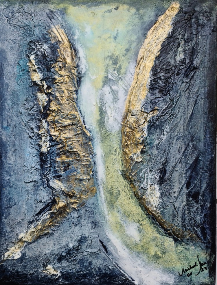 Goldstrom (Mischtechnik auf Leinwand, 30x40cm, 2023)