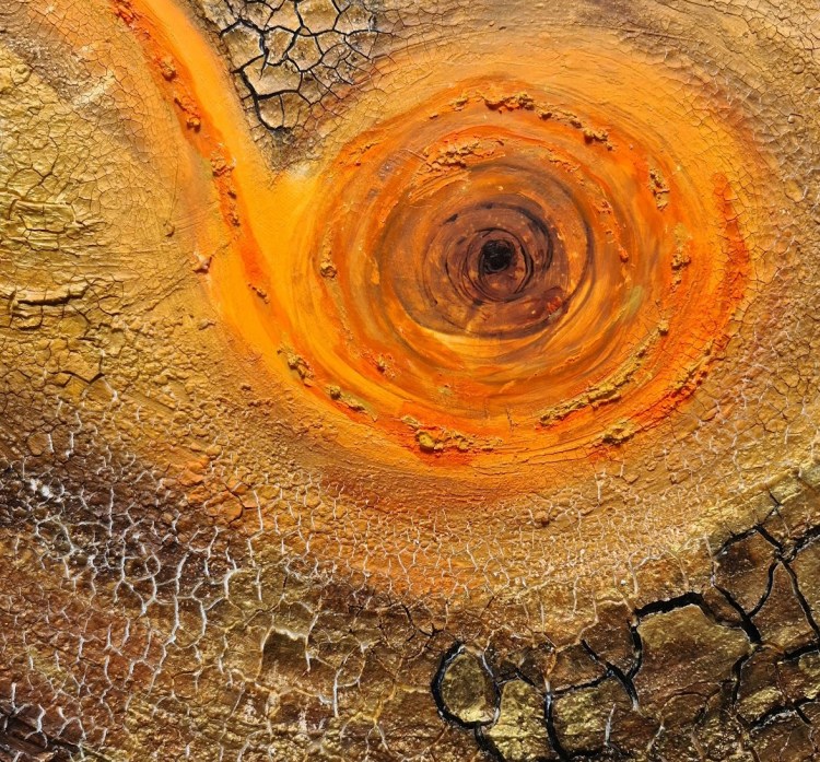 Einlaufende Lava (Mischtechnik auf Leinwand, 40x50cm, 2023, verkauft)