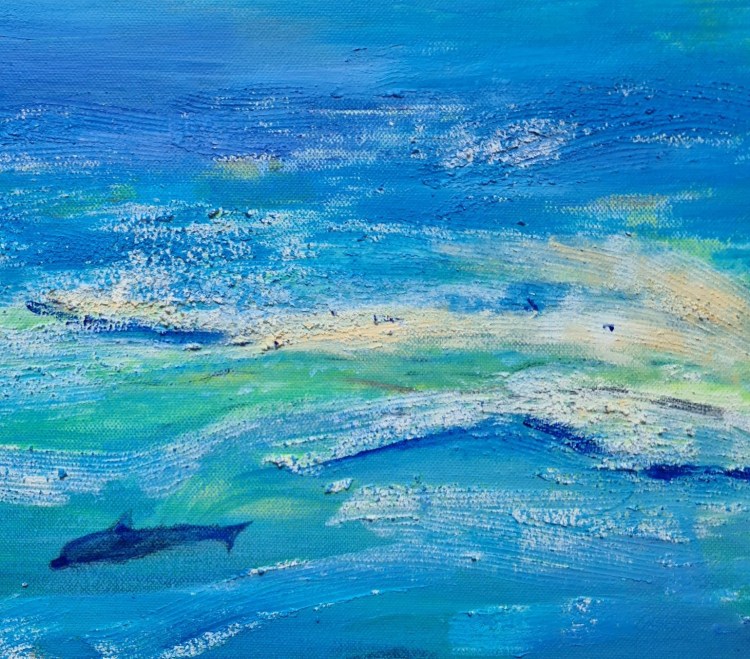 Einsamer Delphin (Mischtechnik auf Leinwand, 40x50cm, 2023)