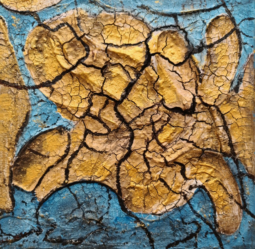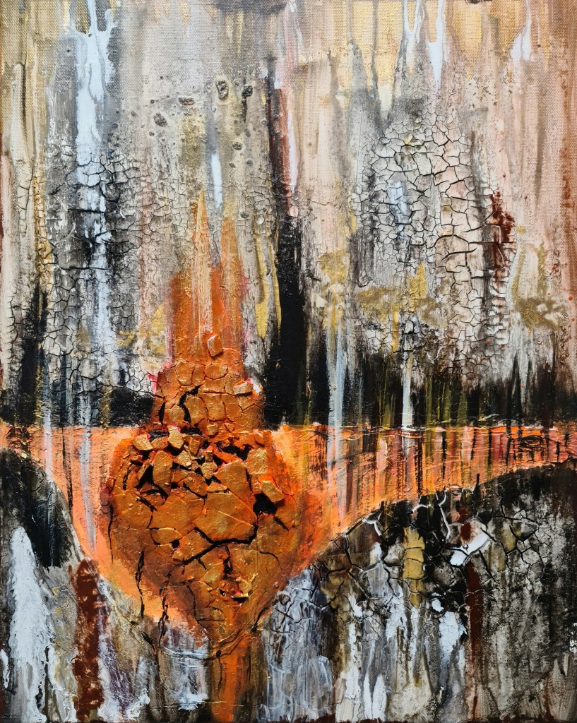 In Scherben zerbrochen (Mischtechnik auf Leinwand, 40x50cm, 2023)