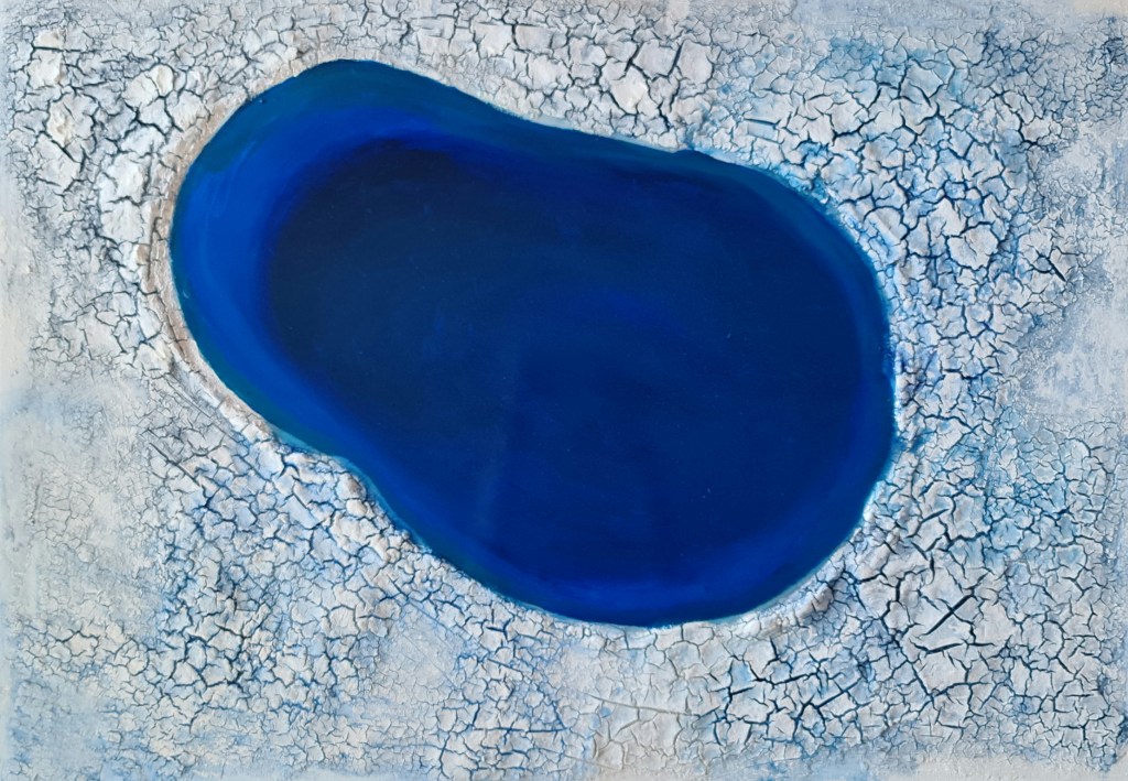 Arktisches Schmelzwasser (Mischtechnik auf Leinwand, 70x100cm,2023)