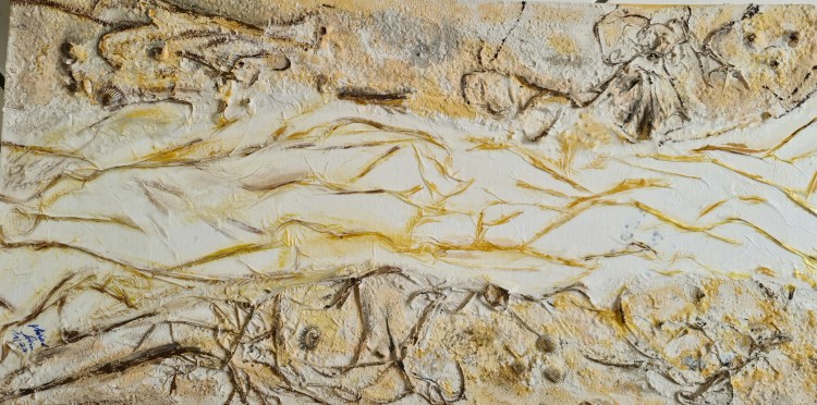 Spuren im Sand (Mischtechnik auf Leinwand, 60x30cm, 2023)