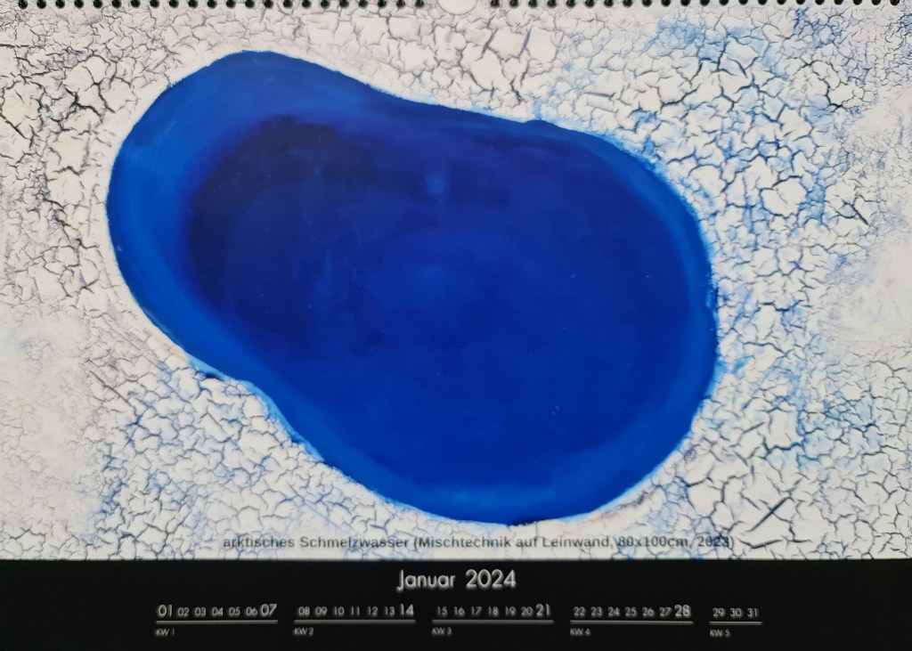 Januar: arktisches Schmelzwasser (Mischtechnik auf Leinwand, 80x100cm, 2023)