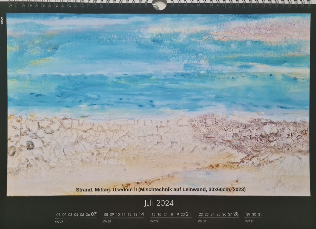 Juli: Strand.Mittag.Usedom II (Mischtechnik auf Leinwand, 30x60cm, 2023)