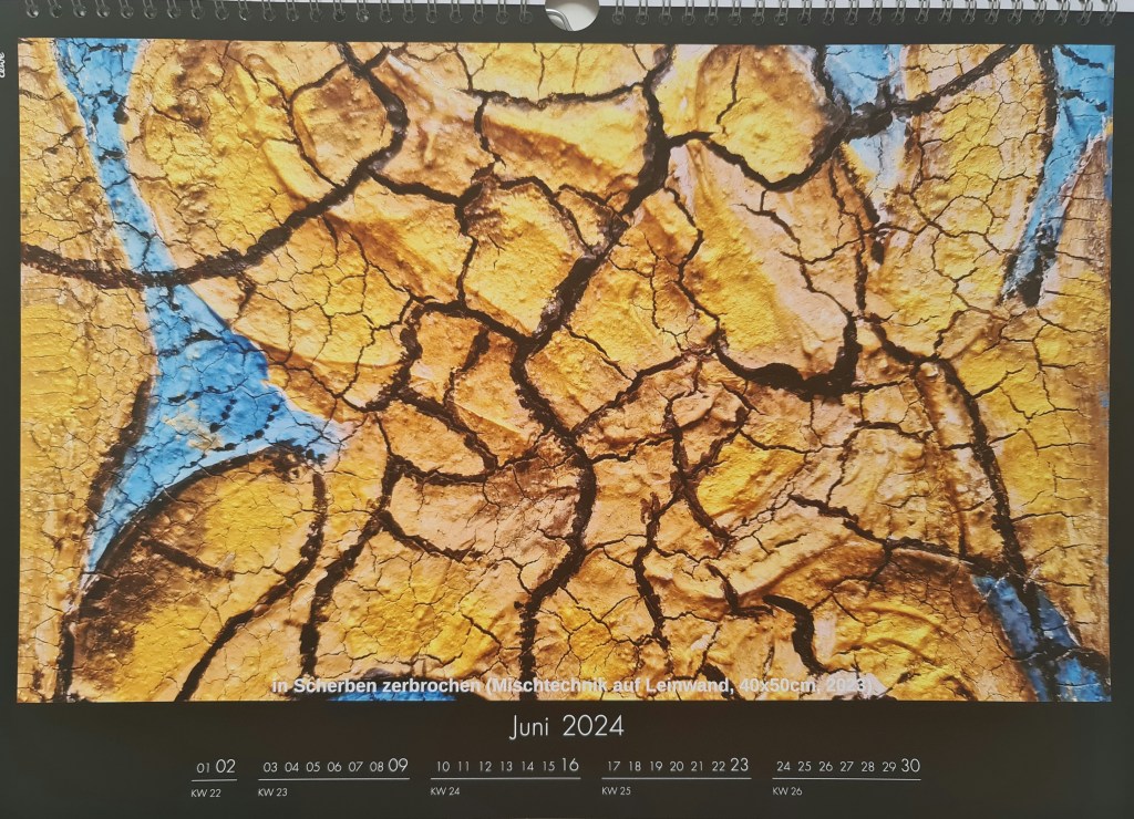 Juni: In Scherben zerbrochen (Mischtechnik auf Leinwand, 40x50cm, 2023)