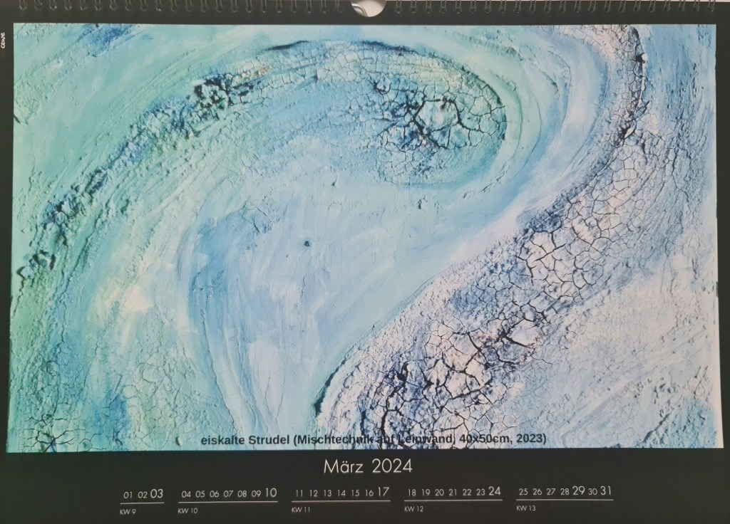 März: Eiskalte Strudel (Mischtechnik auf Leinwand, 40×50, 2023)