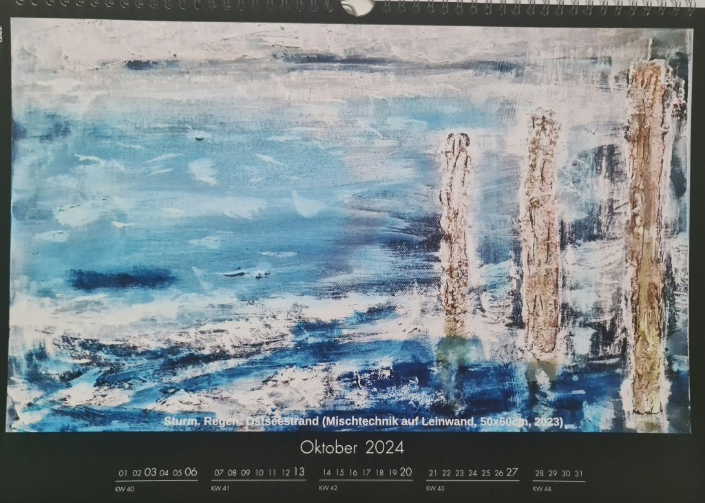 Oktober: Sturm.Regen,Ostseestrand (Mischtechnik auf Leinwand, 50x60cm, 2023)